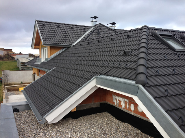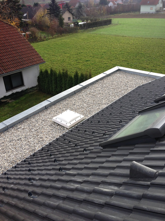 Brezina - Dacheindeckung mit Bramac Dachsteine ,Verblechungen mit Rheinzink 0,7mm walzblank,Flachdachabdichtungen mit EPDM-Folie 1,3mm